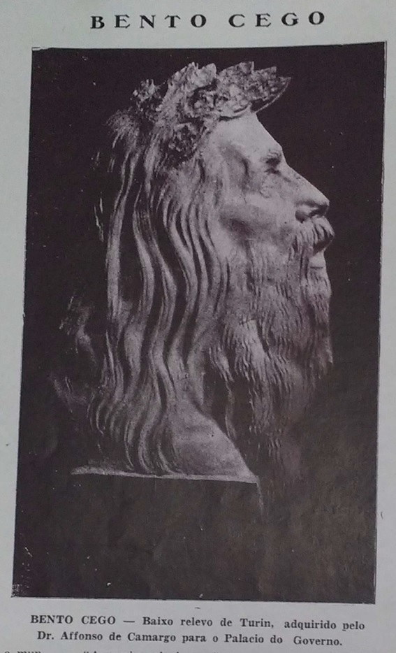 Conhecemos a personagem Bento Cego a partir da revista Illustração Paranaense[1], periódico publicado no estado entre 1927 e 1930. Nela descobrimos que Bento nasceu na cidade de Antonina-PR e é chamado de Homero, pois também seria cego; era um contador de histórias assim como o grego; e saia pela cidade a cantar, só que em vez de lira, ele tocava viola[2]. Observamos ainda no livro Bento Cego[3], escrito em 1902 por Nestor de Castro, a comparação física entre Bento com o que os paranistas imaginavam que seria o Homero Grego: ambos teriam a compostura varonil e cabelos longos e pretos caindo aos ombros.