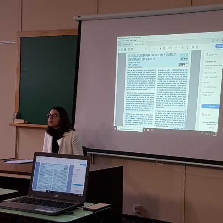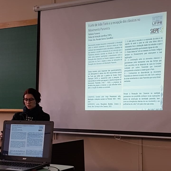 Setembro foi um mês produtivo por aqui: durante a última semana, alguns dos membros de nosso grupo apresentaram as suas pesquisas individuais na 11ª SIEPE da UFPR (Semana Integrada de Ensino Pesquisa e Extensão). Dentre os trabalhos apresentados estavam “A arte de João Turin e a Recepção dos Clássicos no Movimento Paranista” de Barbara Fonseca, “Boudica: de rainha guerreira a símbolo identitario sufragista” de Cassiana Maciel e “Mulheres artistas a partir dos ateliês de Alfredo Andersen e Guido Viaro” de Letícia Schevisbisky de Souza.