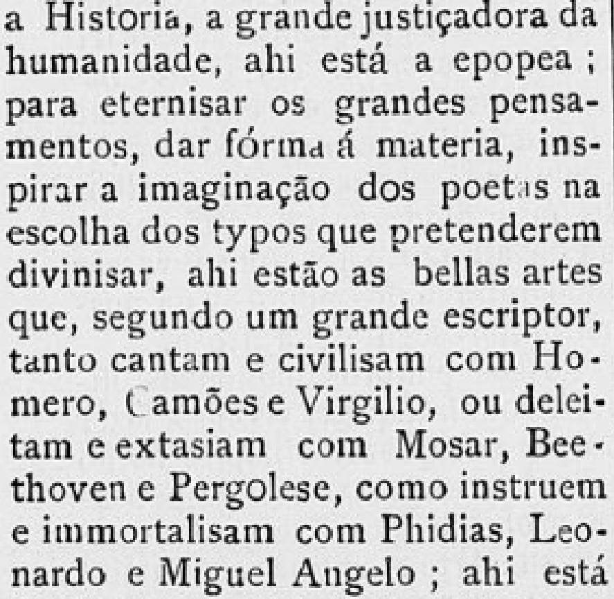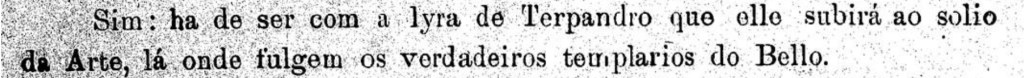 Em sequência, o autor conclui seu ensaio por denotar que a esthetica, como princípio do embelezamento da arte, é a “philosophia da fórma e da ideia, da razão e do sentimento.” Em outra edição da mesma revista, publicada no ano de 1893, encontra-se uma homenagem à um colaborador falecido, “Lycio de Carvalho”, no texto que o consagra, observa-se um exemplo do lugar que os letrados curitibanos se colocavam em :relação a arte ocidental antiga: