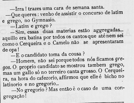 Revista olho da rua (1908), uso da expressão “Perder o latim”.