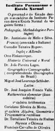 No primeiro anúncio vemos as cadeiras do instituto paranaense, no segundo o decreto do governo do Paraná em 1891, sobre o ensino secundarista; e por último um anúncio de aulas particulares de ensino preparatório, todos ofertavam a língua latina e alguns idiomas modernos.