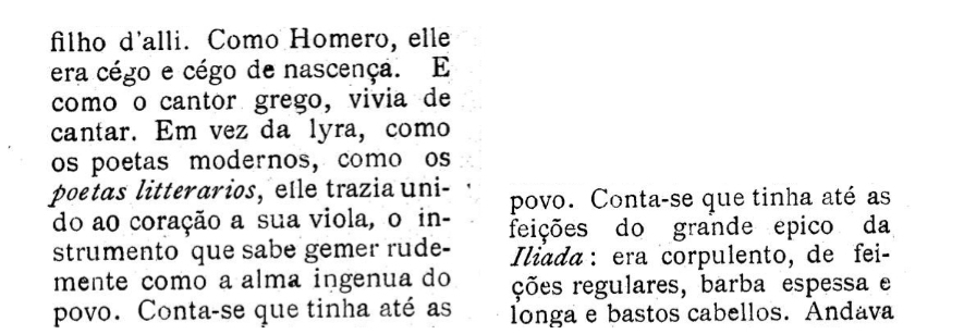 Assim, podemos entender que a associação do violeiro paranaense com Homero teve caráter de valorização da tradição regional, com a exaltação de uma figura do círculo popular, mas também continha certo grau de sofisticação ao ser colocado como contraparte de Homero. Portanto, mesmo que a personalidade paranaense ainda estivesse sendo delineada, o movimento simbolista não demorou a posicioná-la à altura da tradição reivindicada como a fundadora da civilização ocidental.