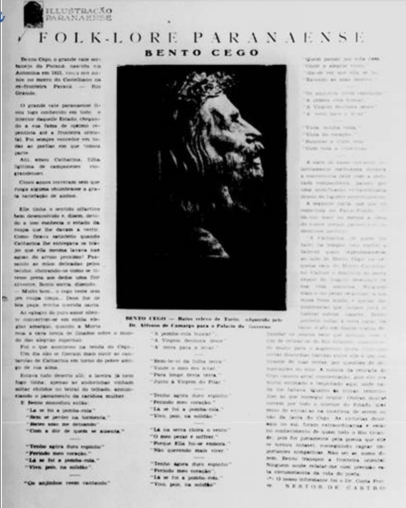 Além das ilustrações, a obra de Turim apareceria na revista sob a forma de matéria. Na edição de número 3, de 1929, a coluna do jornalista Nestor de Castro destaca um baixo relevo do artista que havia sido adquirido pelo então governador Affonso Alves de Camargo, para decorar o Palácio do Governo. A obra trazia o retrato de um personagem bastante celebrado pelos paranistas, Bento Cego, também conhecido por Homero Paranaense. Nascido em Antonina (PR), em 1821, Bento era violeiro e contador e histórias, o fato de ser cego provocou a comparação com o Homero grego. Nota-se no imaginário do artista, que o trovador teria uma postura varonil e cabelos longos caídos no corpo.