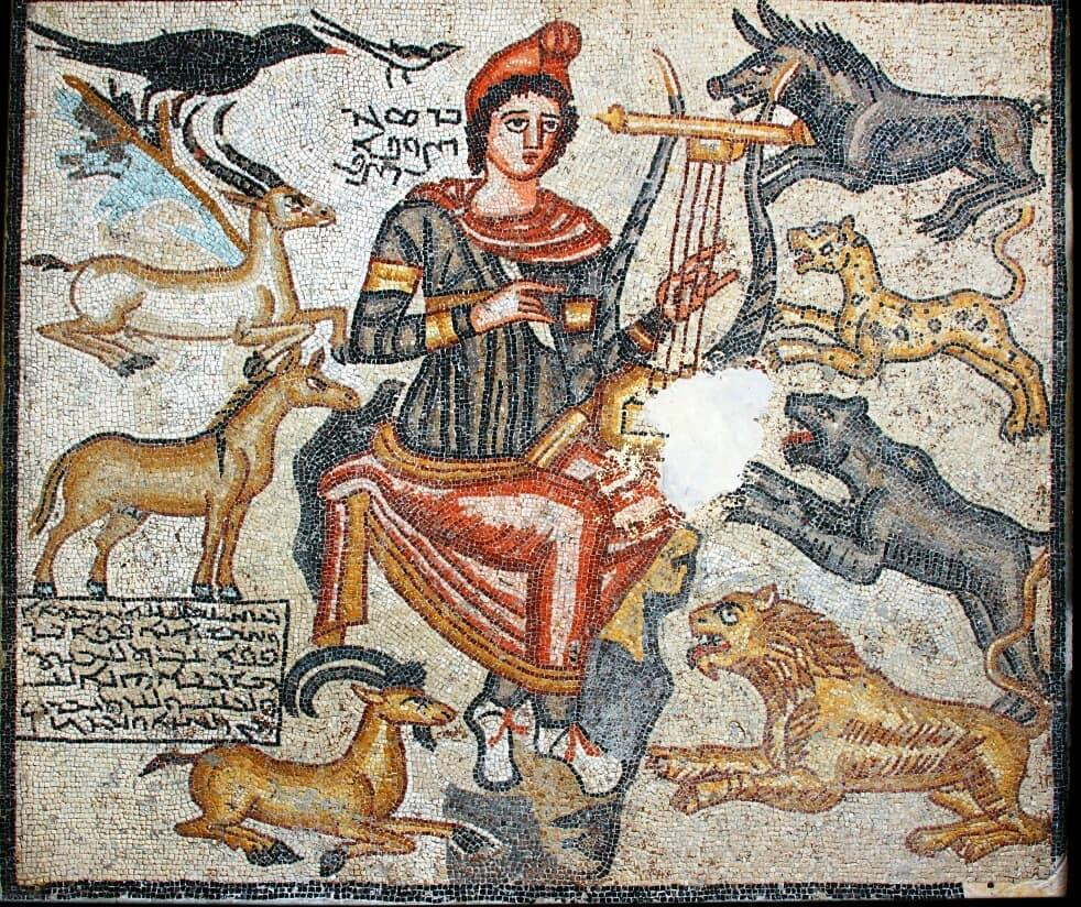 Orfeu – Edessa (Atual Urfa – Turquia). Descoberto em 1980. Hoje no Haleplibahçe Mozaik Müzesi, em Şanlıurfa, Turquia. Disponível em: < https://www.reddit.com/r/ancientrome/comments/u9ktqu/the_mosaic_of_orpheus_roman_period_c_194_ad/?tl=pt-br#lightbox >. Acesso em: 15/09/2025